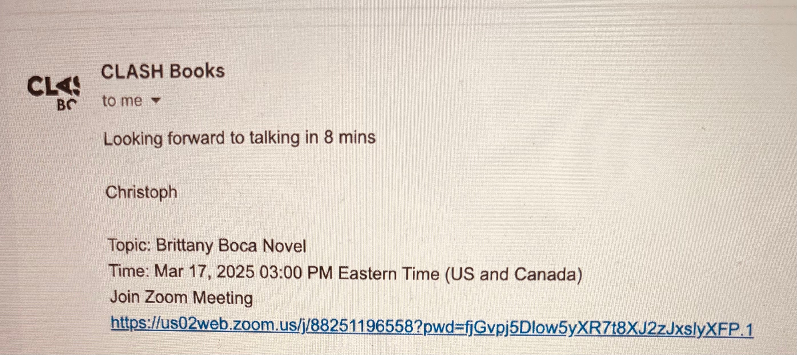 March, 2025. I email CLASH books during their open call for submissions. This is the email I send: